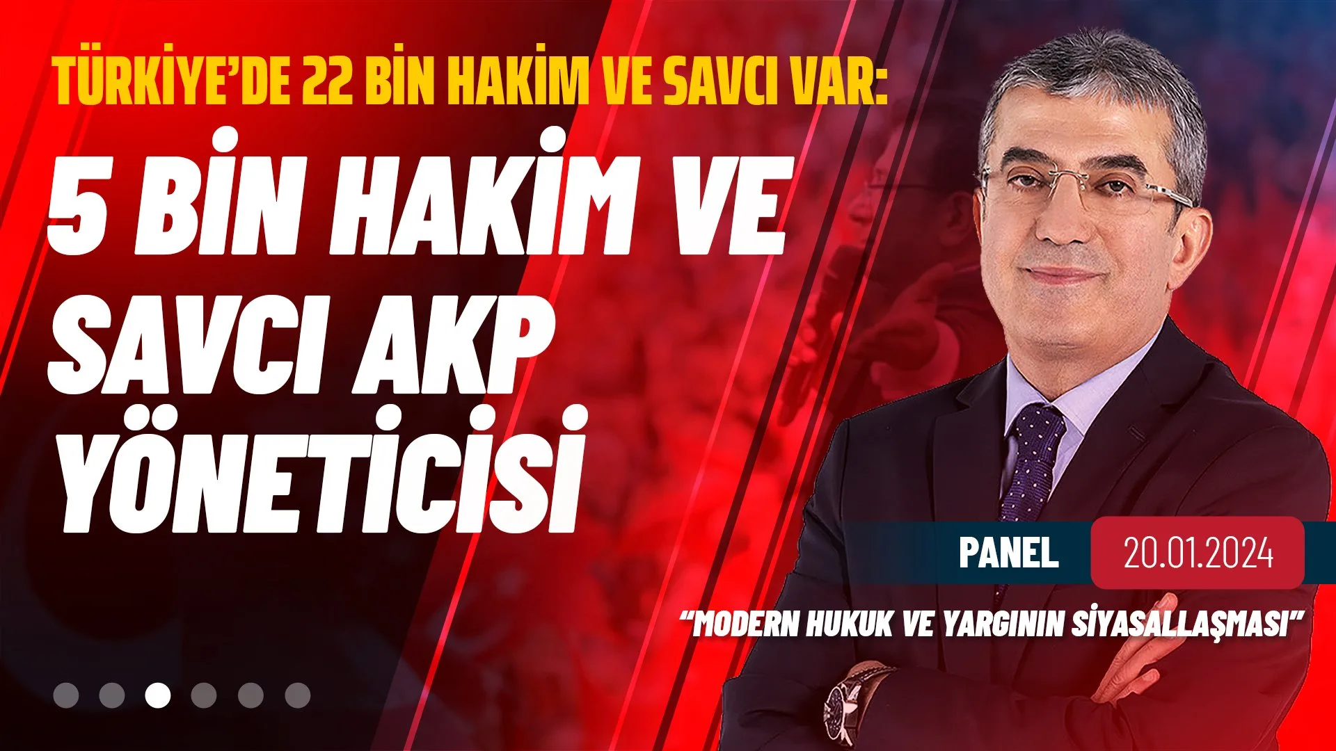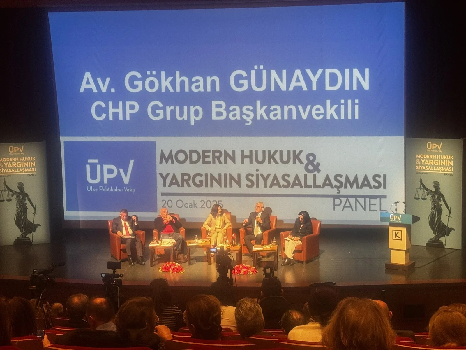 CHP Grup Başkanvekili Gökhan Günaydın, “Modern Hukuk ve Yargının Siyasallaşması” panelinde “Bugün Türkiye’de 22 bin hakim savcı var. Bu 5 bini daha dün AKP’nin il, ilçe yönetim kurulu üyesiyken uydur kaydır sınavlarla cübbe giydirilmiş insanlar” ifadelerini kullandı.