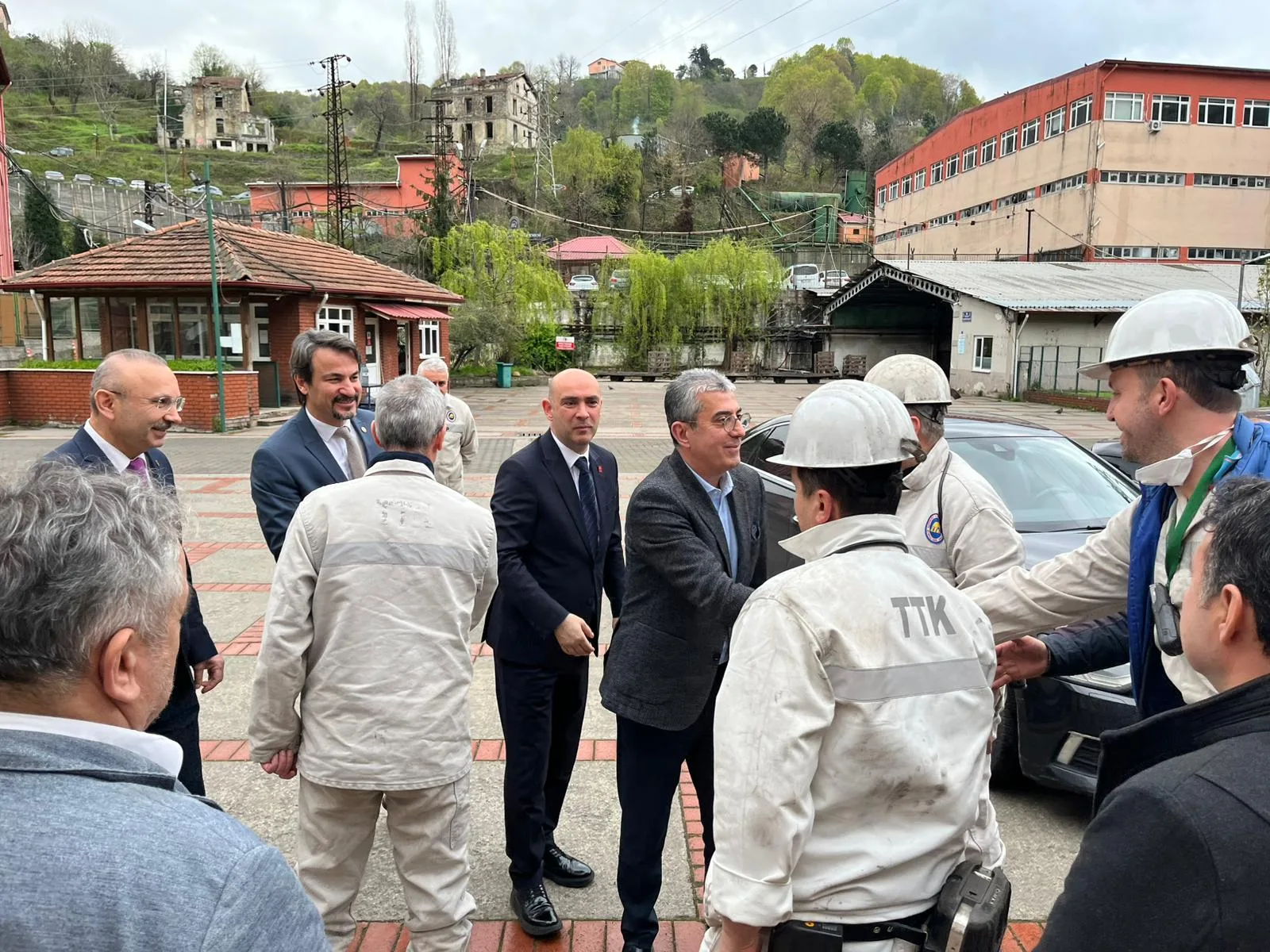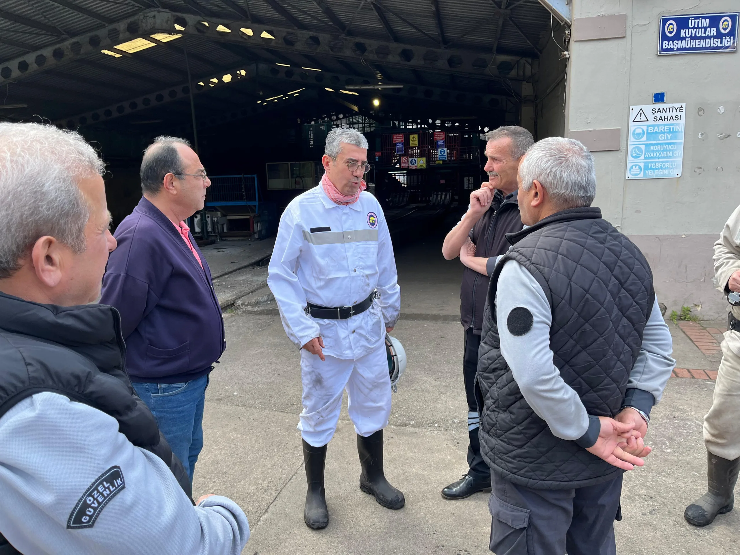 TTK Üzülmez Müessese Müdürlüğü ziyaretinde Müessese Müdürü Ümit Yılmaz Değirmenci ve teknik ekiple bir araya gelen CHP heyeti, iş güvenliği ve üretim süreçleri hakkında detaylı bilgi aldı. Yerin metrelerce altında madencilerle görüşen Günaydın, iş sağlığı standartlarının kağıt üzerinde kalmaması gerektiğini vurguladı. Modern ekipman ve güncel güvenlik teknolojilerinin zorunluluk olduğunu ifade eden Günaydın, “Bu meseleyi yalnızca siyasi bir başlık olarak değil, doğrudan insan hayatını ilgilendiren bir sorumluluk olarak görüyoruz. Madencilerimizin sosyal haklarının güçlendirilmesi ve çalışma saatlerinin yeniden ele alınması öncelikli taleplerimizdir” dedi.