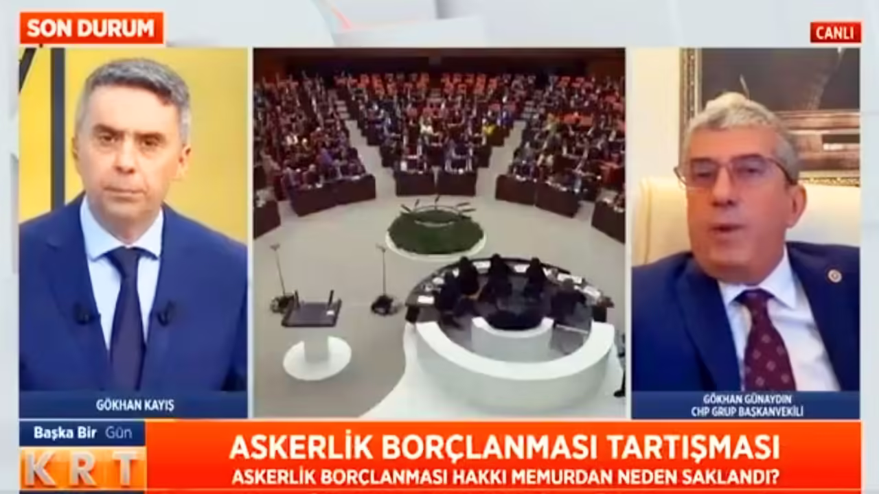 Cumhuriyet Halk Partisi Grup Başkanvekili Gökhan Günaydın KRT TV – Başka Bir Gün programında Gökhan Kayış’ın sorularını yanıtlayarak gündeme ilişkin değerlendirmelerde bulundu: Askerlik borçlanması tartışması: Askerlik borçlanması hakkı memurdan neden saklandı?