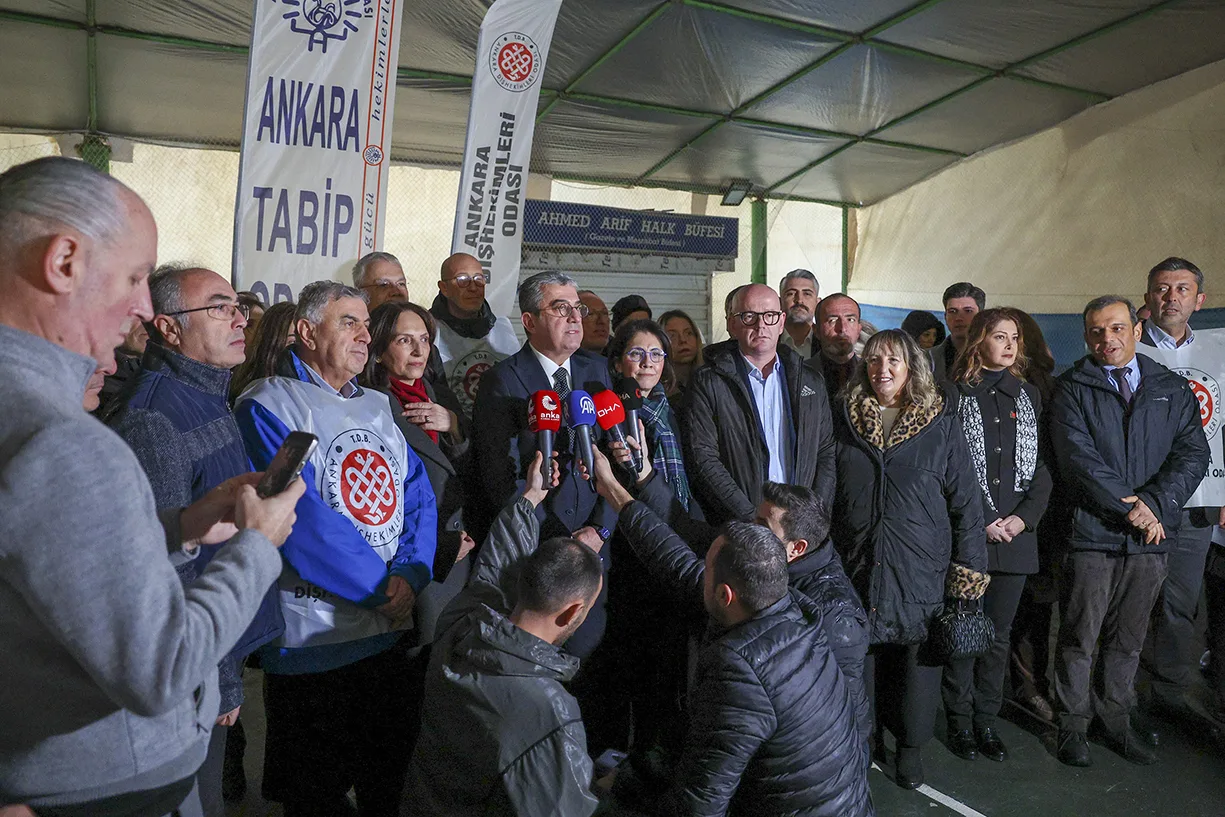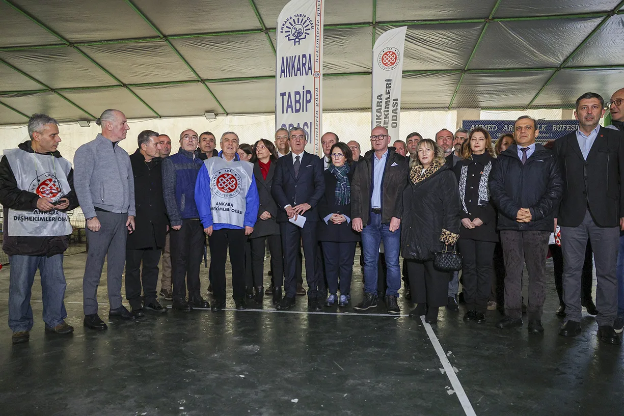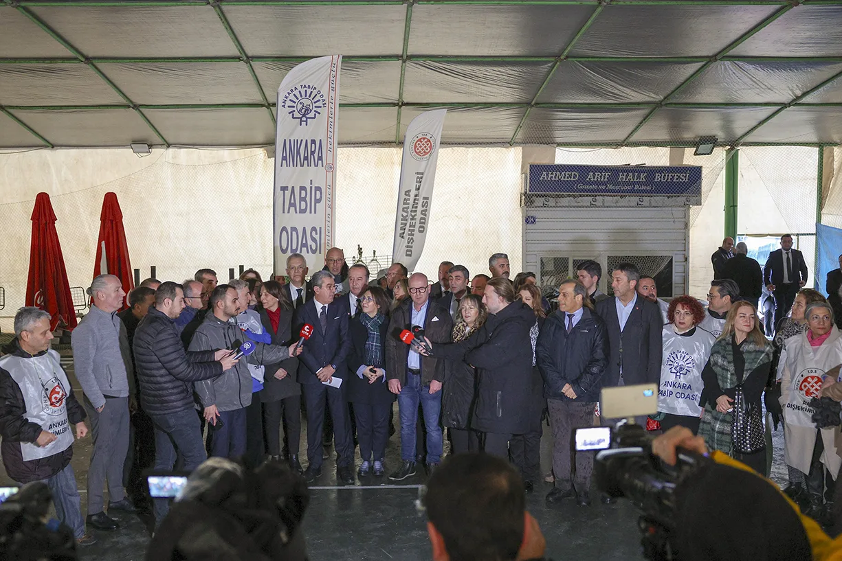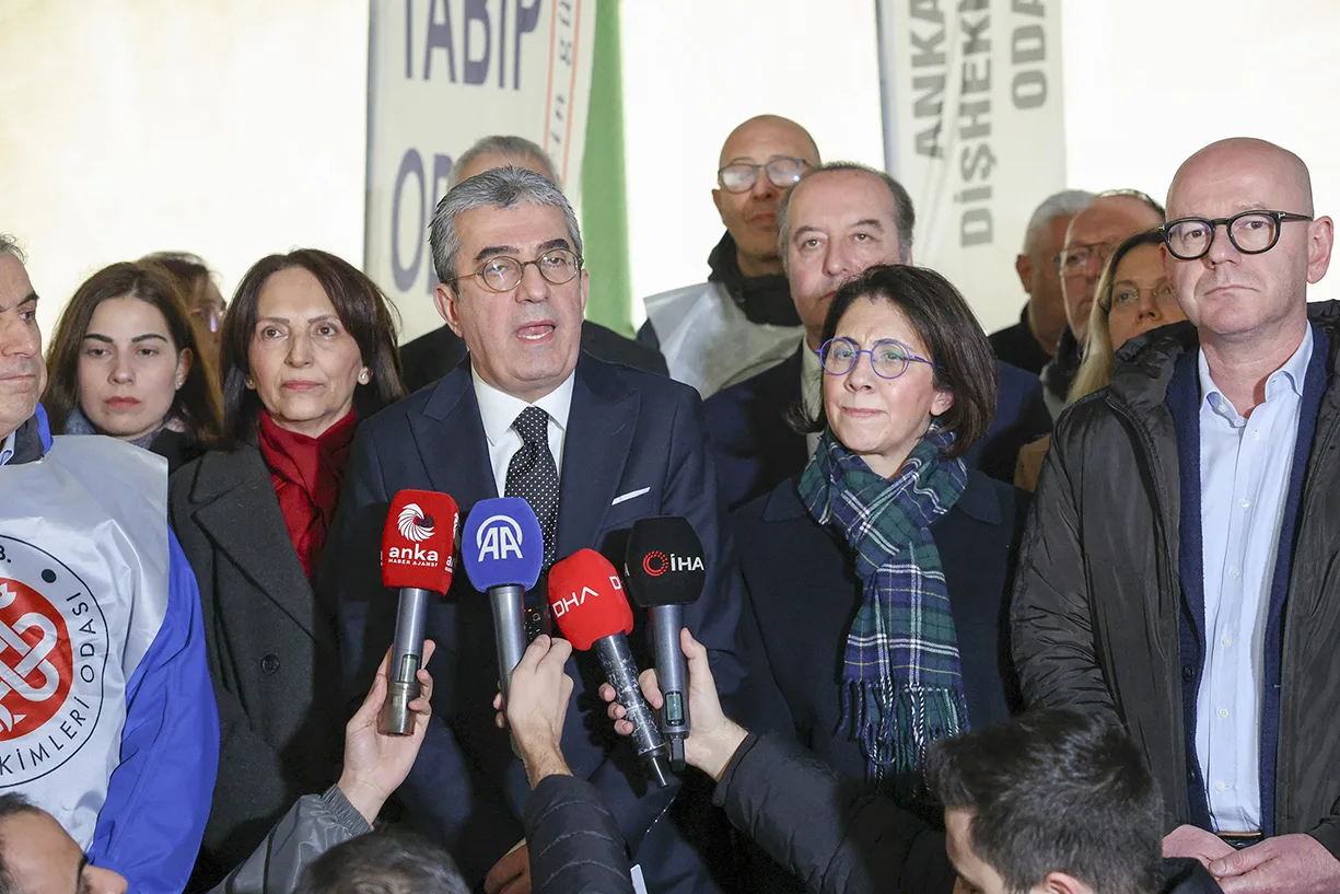 Bugün burada Türk Tabipler Birliği Başkanımız hocamız yanımızda, Türk Diş Hekimleri Birliği yönetim kurulu üyesi arkadaşlarımız yanımızda, Tüm Emlakçılar Birliği başkanları ve yönetim kurulu üyeleri arkadaşlar aramızda, Emlakçılar Odası arkadaşlarımız, yönetim kurulu üyesi arkadaşlarımız aramızda… Yani meslek grubunun hakkını, hukukunu savunmayı kendine görev bilenler aramızda. Kimler burada yok? Onlara da hep beraber kamuoyu bakar.