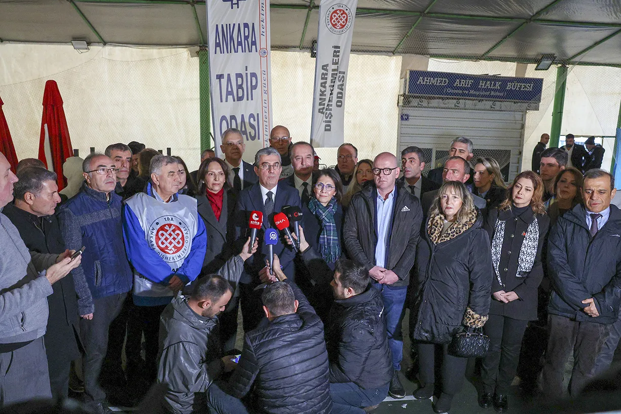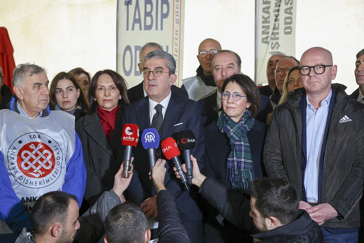 Ben bu düşüncelerle yanımda bulunan Cumhuriyet Halk Partisini temsil eden milletvekili arkadaşlarımla, meslek gruplarını temsil eden meslek insanlarıyla, öğretim üyeleriyle ve elbette tüm hakkını hukukunu savunan yurttaşlarım adına diyorum ki: Asla boyun eğmeyeceğiz, asla bu düzene teslim olmayacağız. Anayasa Mahkemesinin bu çerçevede 10 küsur yıldır vermediği yürütmeyi durdurma kararını derhal vermesi ve ivedilikle iptal kararını çıkartması, daha evvel yaptığımız hayati başvurulara da bir sonuç vererek onları da iptal kararını vermesini beklediğimizi bu ortamda sizlerle paylaşıyoruz ve tüm yurttaşlarımıza saygılarımızı sunuyoruz. Sağ olun, var olun.