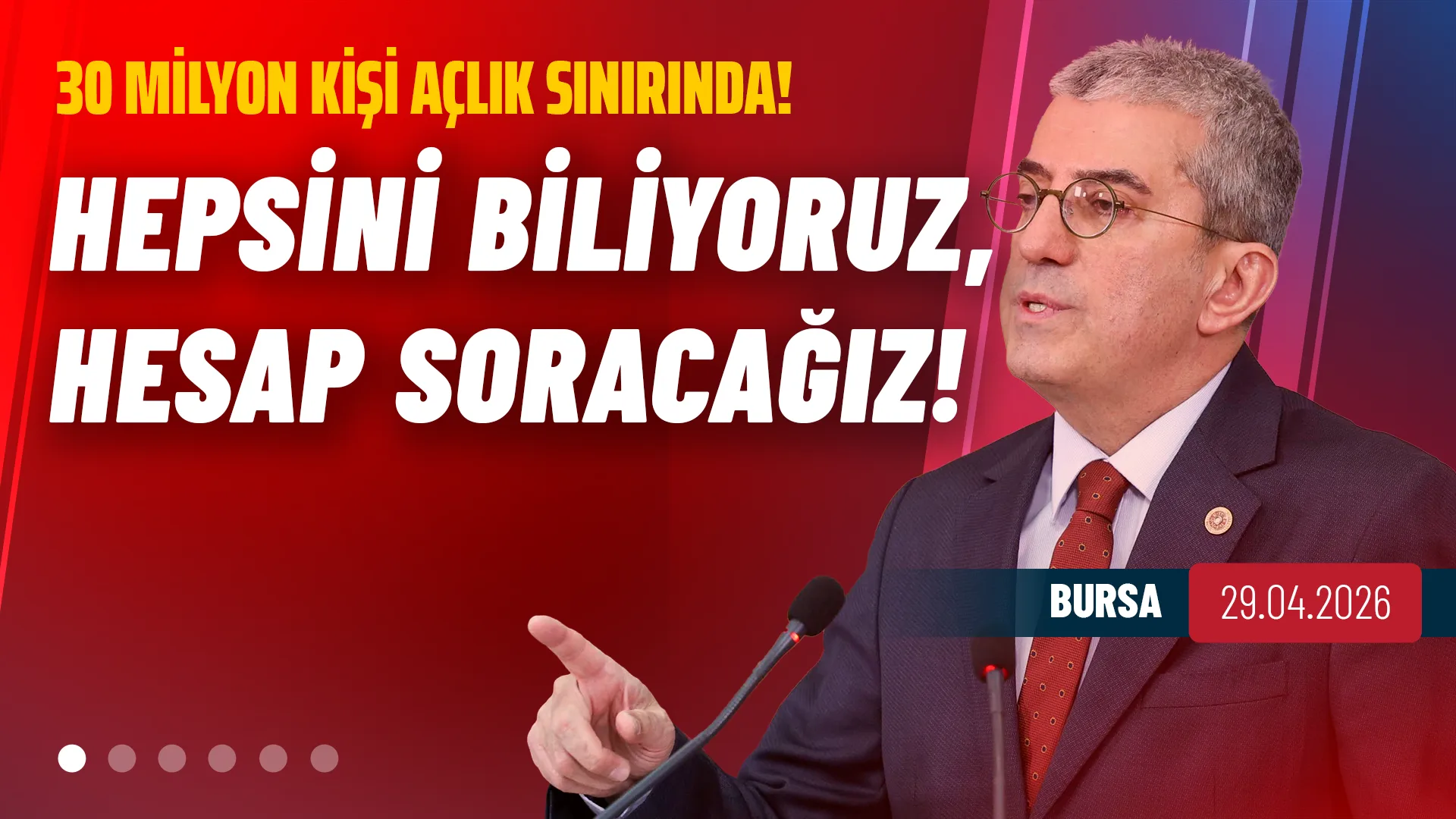 Evet, birileri diyordu ki “Faiz sebep, enflasyon sonuçtur”. Dünyanın başka hiçbir yerinde bir iktisadi kriz yokken Türkiye’de kendi elleriyle bir kriz yarattılar. An itibarıyla %30’ların altına inemeyen sabitlenmiş bir enflasyon var. Bu enflasyonun üzerinde faiz oranları var. Bu memleket dünyanın 20 büyük ekonomisi arasında ama 30 milyon insan açlık sınırının altında kalmaktan çorba kaynatamıyor. Emeklilerimiz, asgari ücrette çalışanlar, işsizler; bunlar yoksulluk sınırının altında değil, açlık sınırının altında. Bu ekonomiyi 23 yılda buraya kim getirdi arkadaşlar?. Türkiye bir taraftan 30 milyon insanı süründürürken, bir taraftan dünyanın en çok dolar milyarderi artışına sahne olan memleket haline geliyor. Demek ki birileri bal tutup parmağını yalıyor. Her türlü hukuksuzluğun, yolsuzluğun, arsızlığın 23 yıldır içinde olanlar bugün o suçlarını Cumhuriyet Halk Partisi’ne yöneltmeye çalışıyorlar. Buradan açıkça ilan ediyorum: Hepinizi biliyoruz, her birinin hesabını teker teker soracağız.