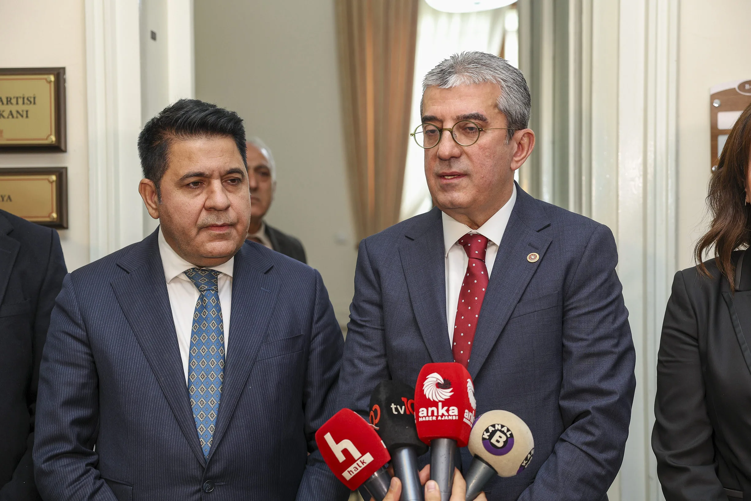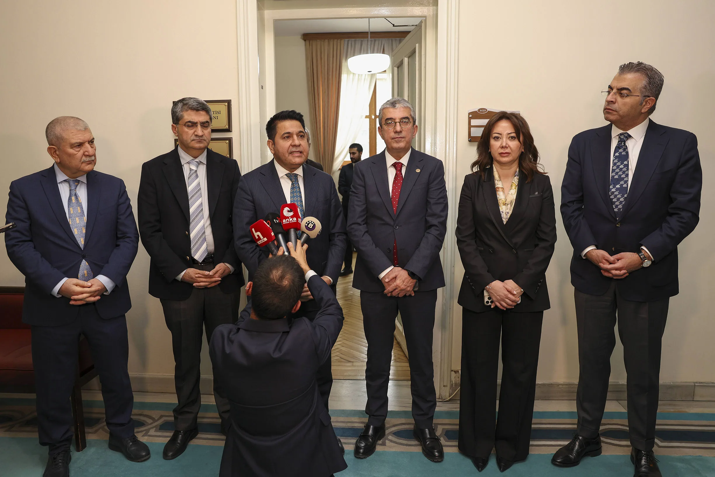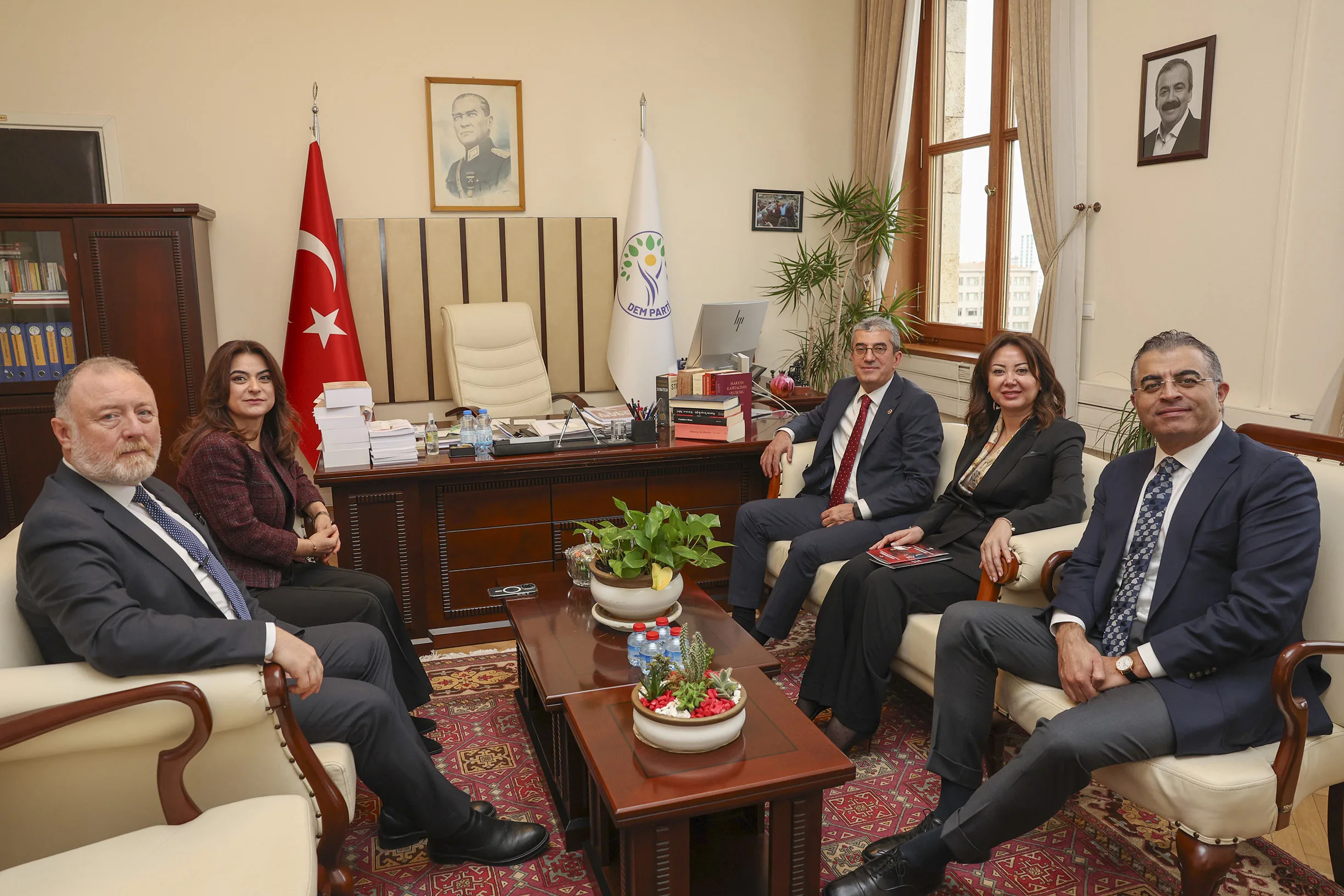 Bu çerçevede görüşlerimizi DEM Parti Grubu’na aktardık. Ben bir kere daha hem nazik kabulleri hem de değerli sohbetleri için her iki kıymetli Grup Başkanvekilimize de huzurlarınızda çok teşekkür ediyorum.”