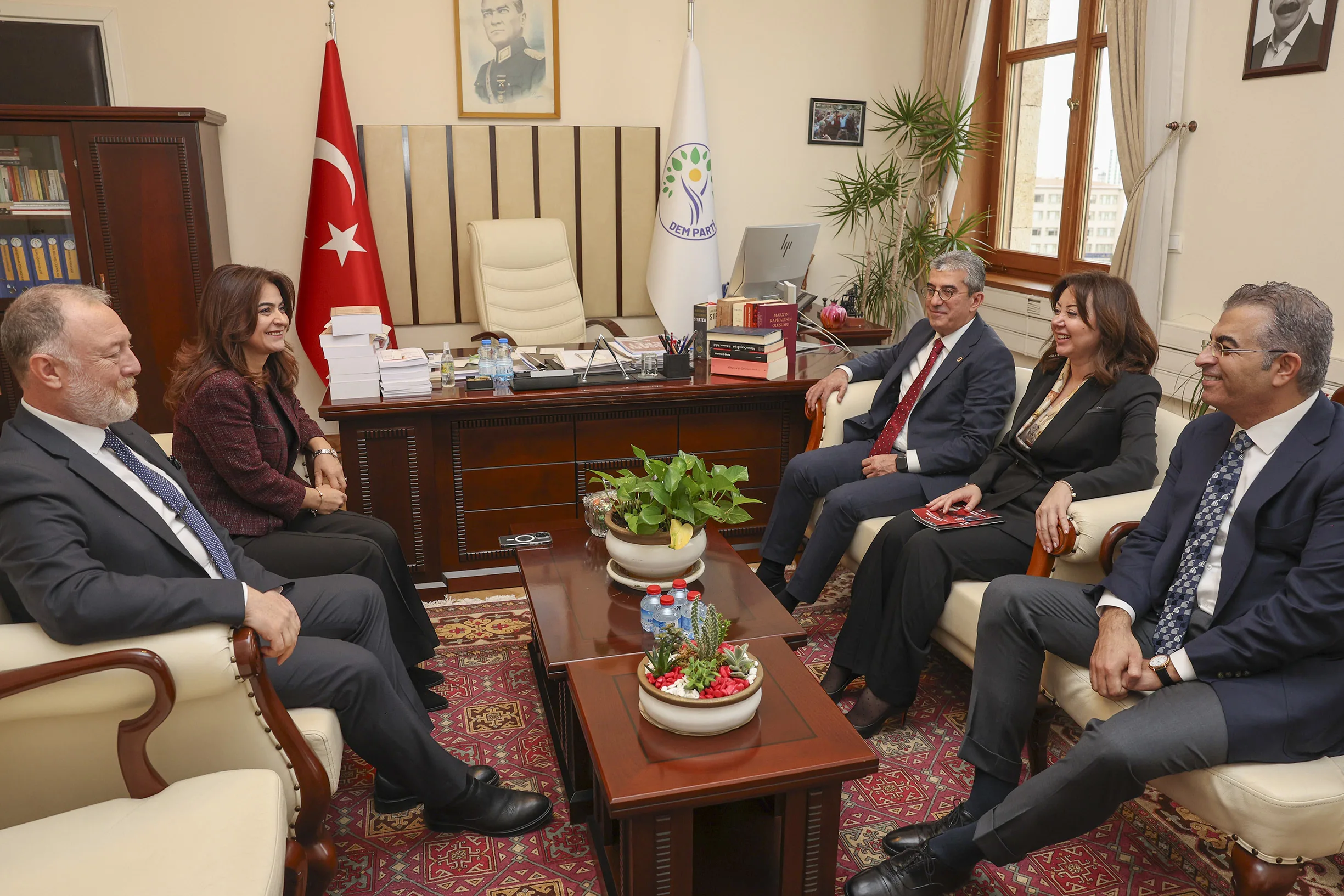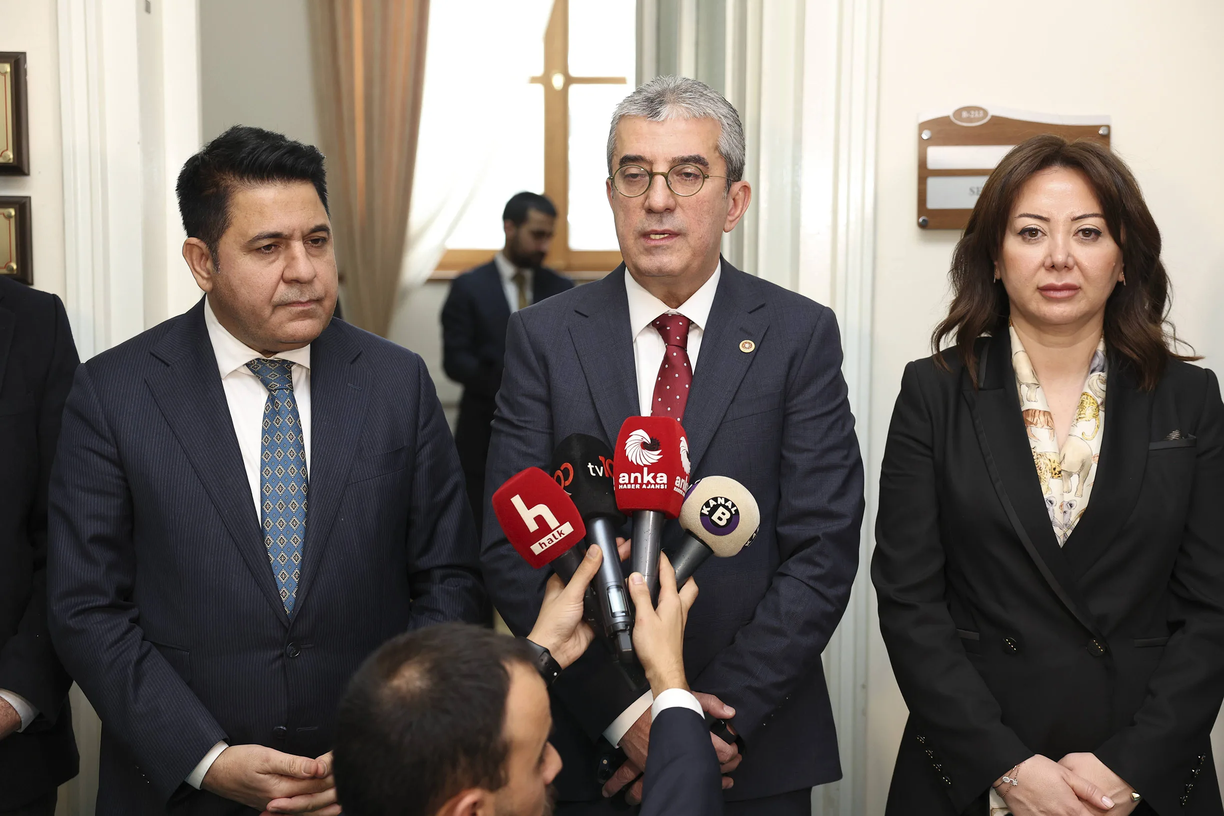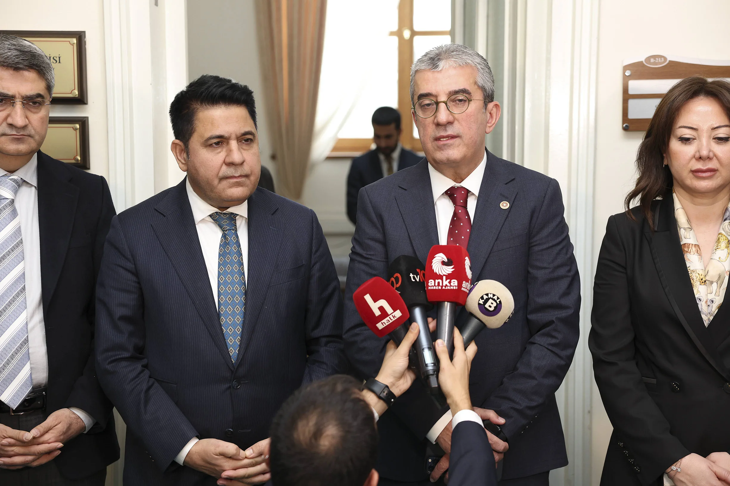 Bu çerçevede görüşlerimizi DEM Parti Grubu’na aktardık. Ben bir kere daha hem nazik kabulleri hem de değerli sohbetleri için her iki kıymetli Grup Başkanvekilimize de huzurlarınızda çok teşekkür ediyorum.”