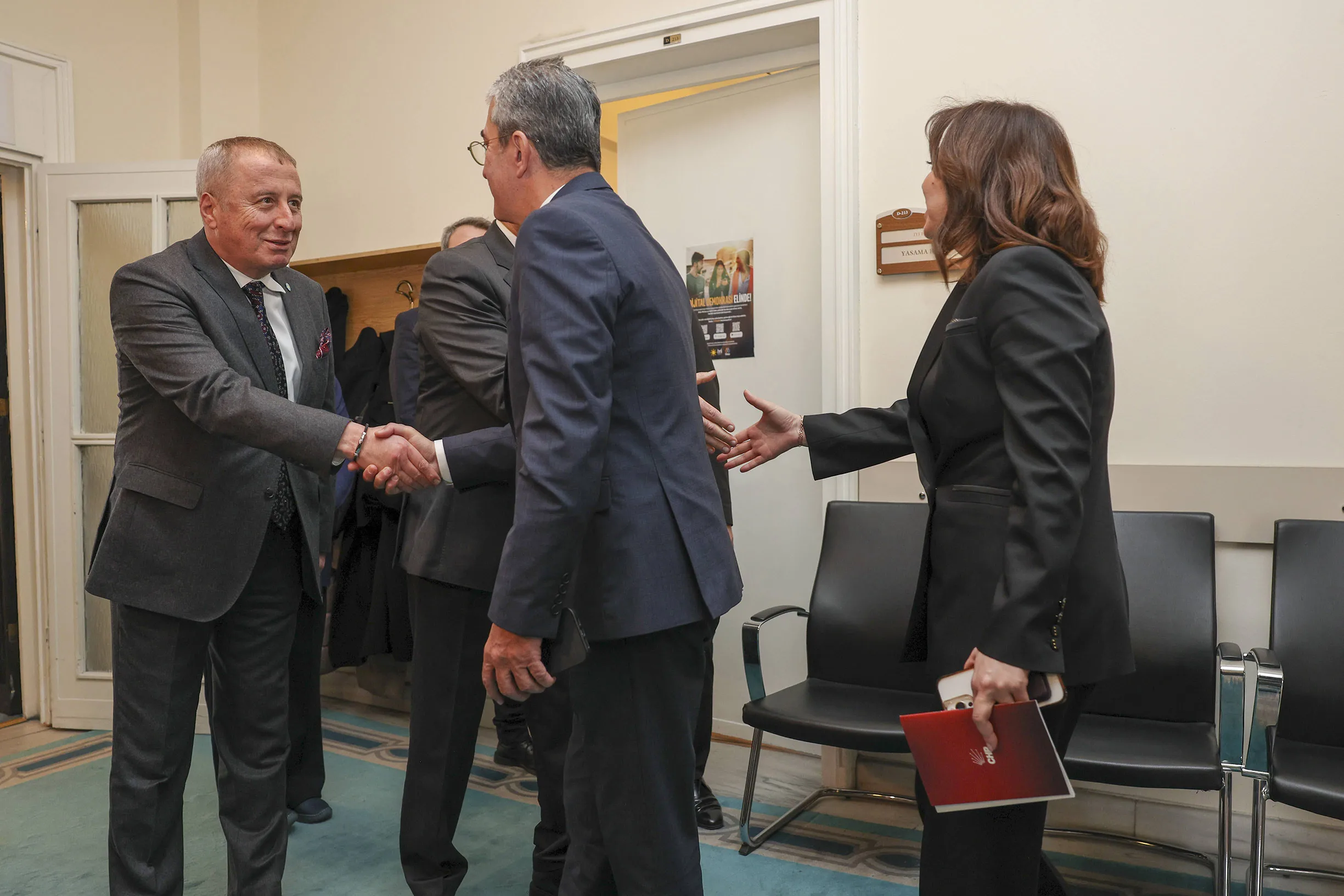 CHP, adalet ve demokrasi sorunlarını karşılıklı değerlendirmek amacıyla TBMM’de siyasi parti turlarına başladı. Ziyaretlerde Cumhuriyet Halk Partisi Grup Başkanvekili Gökhan Günaydın ile birlikte Genel Başkan Yardımcıları Gül Çiftci ve Serkan Özcan; Yeni Yol Partisi, İYİ Parti ve DEM Parti gruplarını ziyaret ederek gündemdeki sıcak başlıkları değerlendirdi.