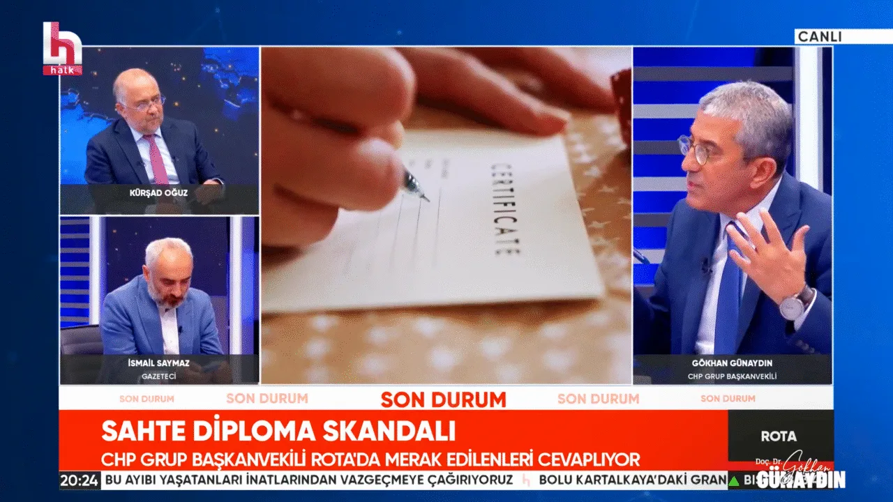 CHP Grup Başkanvekili Gökhan Günaydın, Halk TV TV’de Rota programına katıldı ve İsmail Saymaz ve Kürşad Oğuz’un sorularını yanıtlayarak gündeme ilişkin açıklamalarda bulundu.