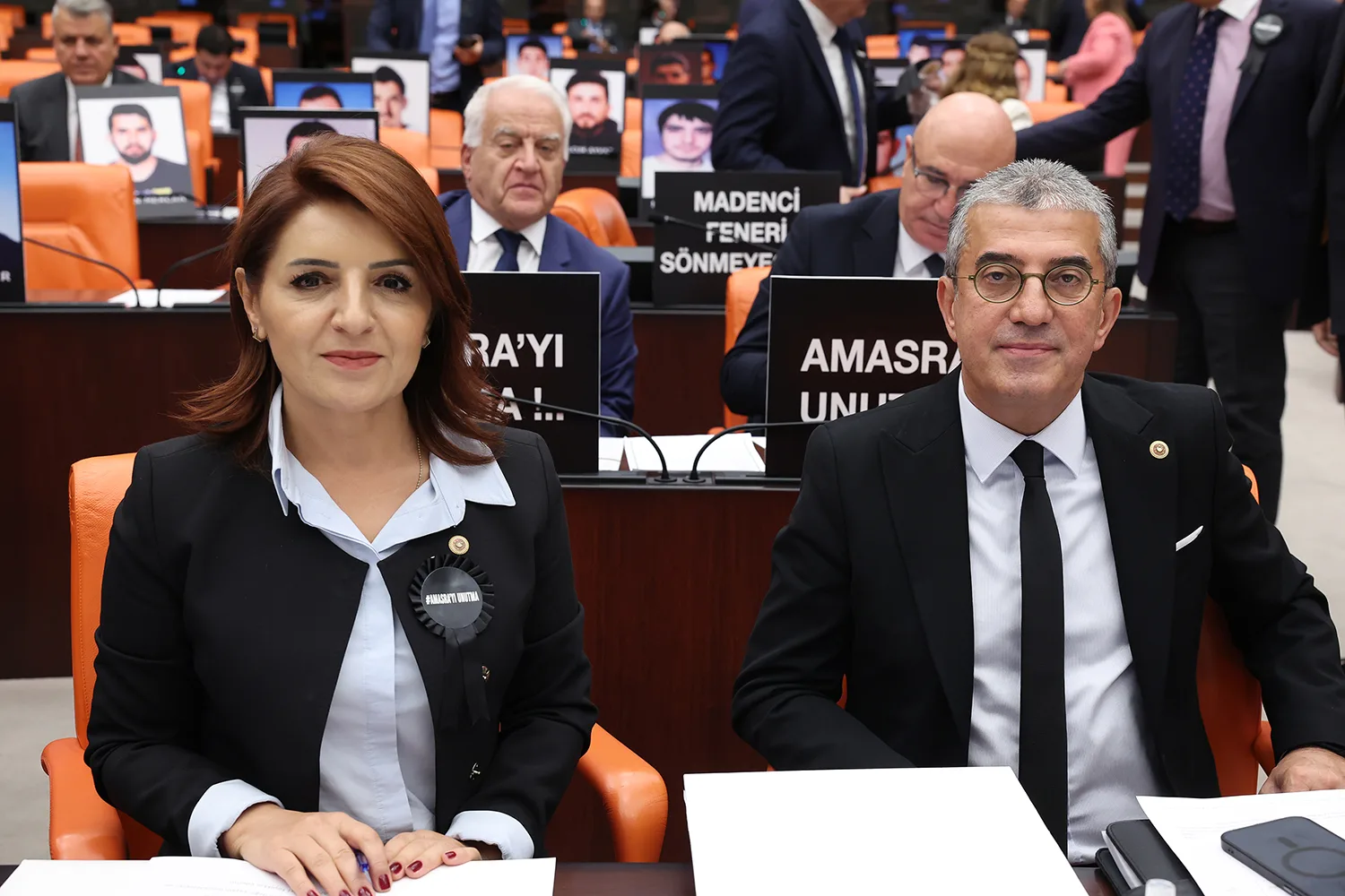 Evet, yakamızda “Amasra’yı Unutma!” var. Bu da Soner Ak, yaşamını kaybeden 43 arkadaşımızdan birisi, bir fotoğraf gibi görünüyor ama eşi var, annesi var, çocukları var. Bu arkadaşlarımız bir faciada yaşamlarını kaybetmediler, bu arkadaşlarımız bir iş cinayetine kurban gittiler. Bu, yalnızca benim fikrim değil, aynı zamanda iş güvenliği ve eğitim tatbikatlarının eksikliğini, havalandırma ve metan drenajı eksikliğini, üretim baskısını ortaya koyan resmî raporlarda da kanıtlanmıştır. Peki, 14 Ekim 2022 tarihinde meydana gelen bu faciadan sekiz yıl evvel Soma’da biz 301 çocuğumuzu kaybetmemiş miydik? Eğer Soma’dan ders alsaydık Amasra olmazdı, bugün de Amasra’dan ders aldığımızı düşünmüyorum. O yerin metrelerce altında geçimini sağlamaya çalışan ve kara kömüre kazma sallayan madenci kardeşlerimize selam olsun. Sağlıkla, huzurla yaşamlarına devam etmelerini ve evlerine ekmek parası götürmelerini diliyorum.