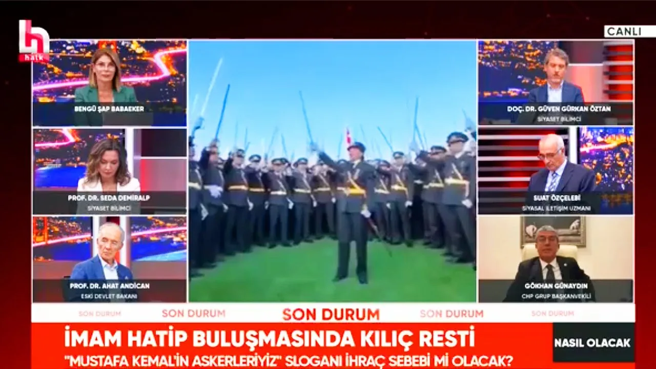 Cumhuriyet Halk Partisi Grup Başkanvekili Gökhan Günaydın Halk TV’de Seda Demiralp, Ahat Andican, Güven Gürkan Öztan, Suat Özçelebi’nin konuk olduğu ve Bengü Şap Babaeker’in sunduğu Nasıl Olacak? programında mezuniyet töreninde teğmenlerin ‘Mustafa Kemal’in Askerleriyiz’ sloganının ardından Erdoğan’ın İmam Hatip buluşmasında yaptığı yorumları değerlendirdi.