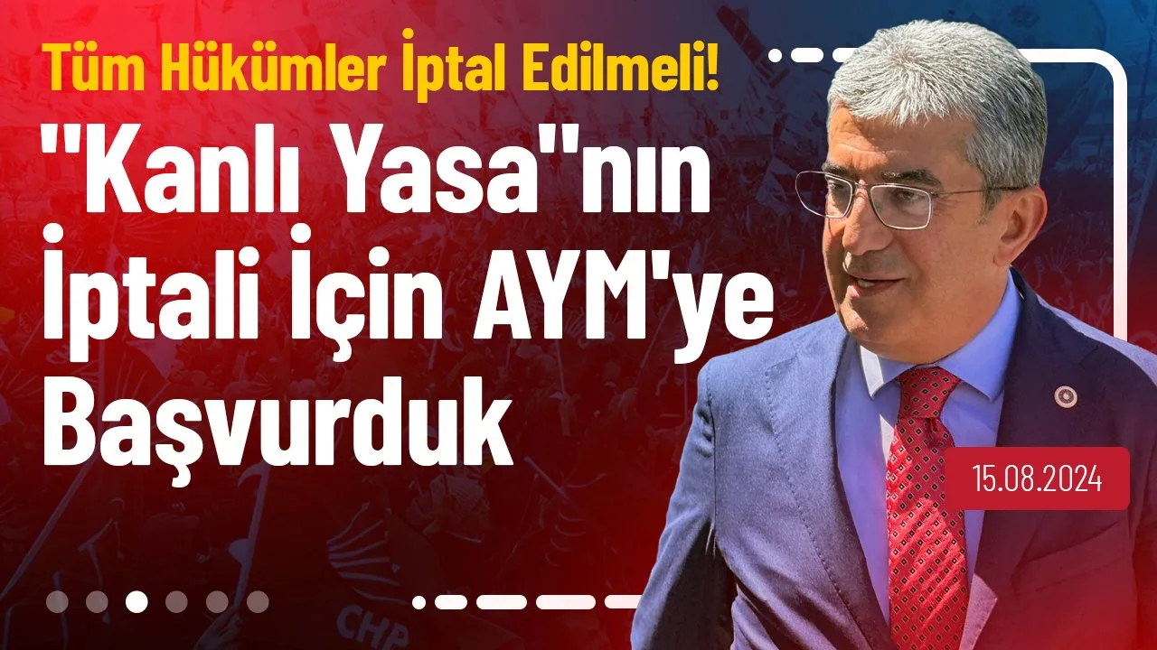 CHP Grup Başkanvekili Gökhan Günaydın “Kanlı Yasa”nın durdurulması ve iptali için Anayasa Mahkemesi’ne yapılan başvurudan sonra basın açıklaması gerçekleştirdi. Günaydın açıklamasında, “AYM’nin yasayı tüm hükümleriyle beraber iptal etmeye davet ediyoruz” dedi.