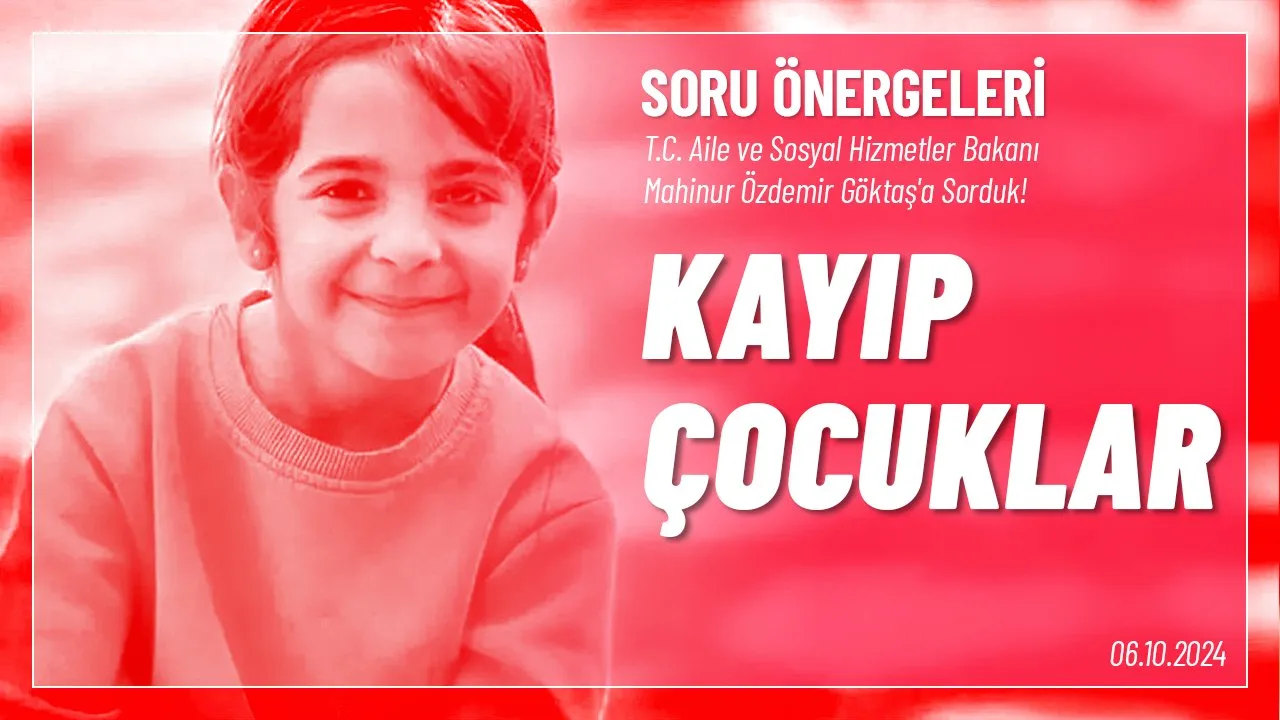 CHP Grup Başkanvekili Gökhan Günaydın; Türkiye’deki kayıp çocuklar hakkındaki vakalar ile ilgili Aile ve Sosyal Hizmetler Bakanı Mahinur Özdemir Göktaş’ın yanıtlaması istemiyle verdiği soru önergesini TBMM gündemine taşıdı.