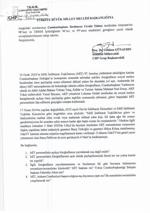 T.C. Cumhurbaşkanı Yardımcısı Cevdet Yılmaz tarafından Anayasa’nın 98’inci ve TBMM İçtüzüğünün 96’ncı ve 99’uncu maddeleri gereğince yazılı olarak cevaplandırılmasını talep ettiğim soru önergemizi bilgilerinize sunarım. 18.01.2024