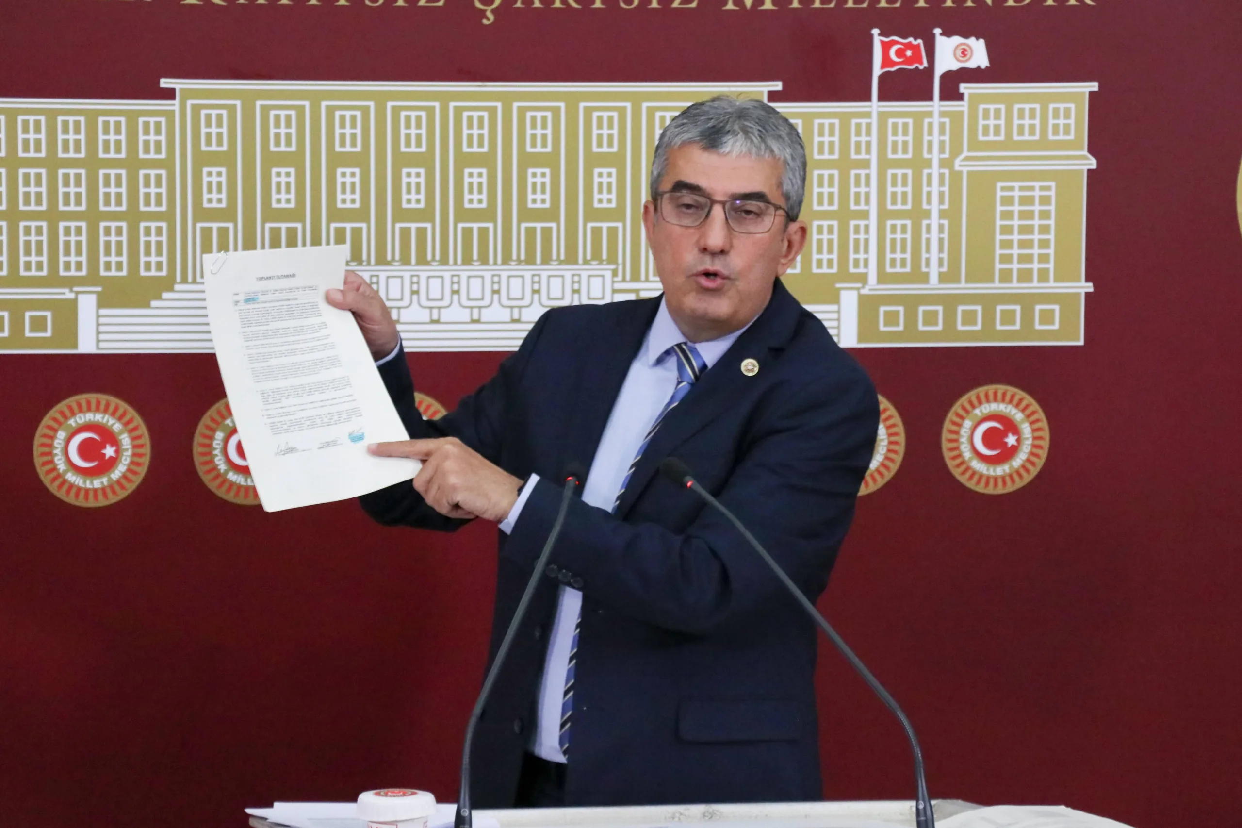 “Size bir evrak daha dağıttım, bu 28 Ağustos 2019 tarihli. Bu kez kendisinin talep ettiği değişiklikleri bu kez Ulaştırma Bakanı olarak onaylıyor. Yani düşünün, bu Mehmet Cahit Turhan konsorsiyum CEO’su olarak taleplerde bulunuyor, sonra dönüyor Ulaştırma Bakanı olarak bu taleplerin tamamını kabul ediyor. Arkadaşlar, böylece ortaya çıkan kamu zararı en az 5 milyar dolar.”